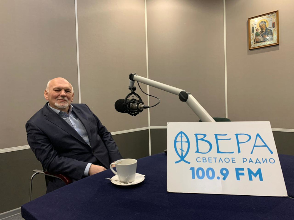 — Напомню, что в гостях у светлого радио сегодня Евгений Стрельчик, ответственный редактор «Журнала Московской Патриархии».